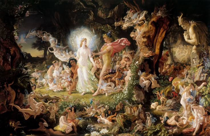 ۵.”نزاع اوبرون و تیتانیا” (The Quarrel of Oberon and Titania) – جوزف نوئل پاتون (1849)